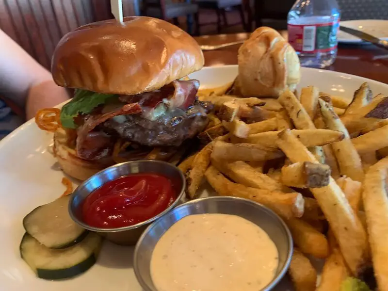 We were assigned a room in the newer wing on the north end of the property. The room was large and clean. We didn’t have much of a view (just the parking lot) and a basic bathroom. I was a bit disappointed staying in the new wing, because it felt more like a chain hotel experience. (This was in contrast to the historical feel of the main building.)